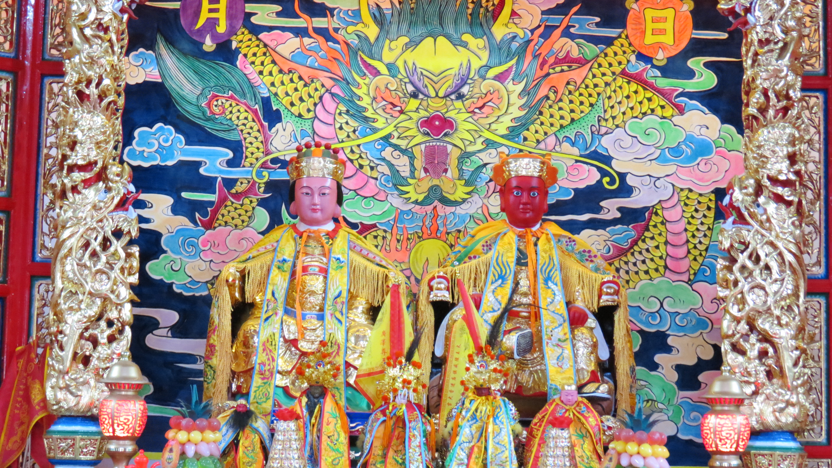 喜乎巍巍殿宇,金碧辉煌。圣公圣妈,普照神光,恩沾内陆,泽及外洋。福佑四境黎元安泰康强,八方善信如意吉祥。